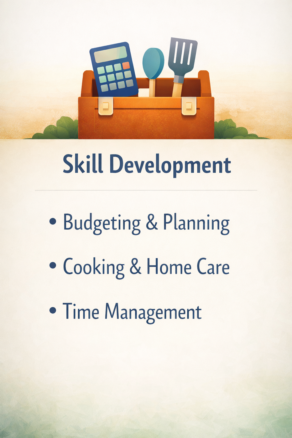 Budgeting and Financial Literacy + Cooking and Meal Planning + Scheduling and Time Management + Household Responsibility