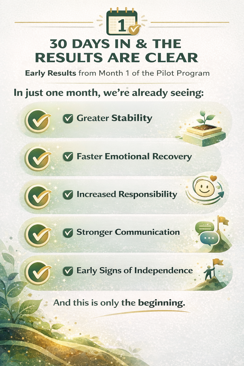 This pilot is showing what becomes possible when neurodiverse adults are given a structured path toward autonomy — not through control, but through relationship, consistency, and dignity.