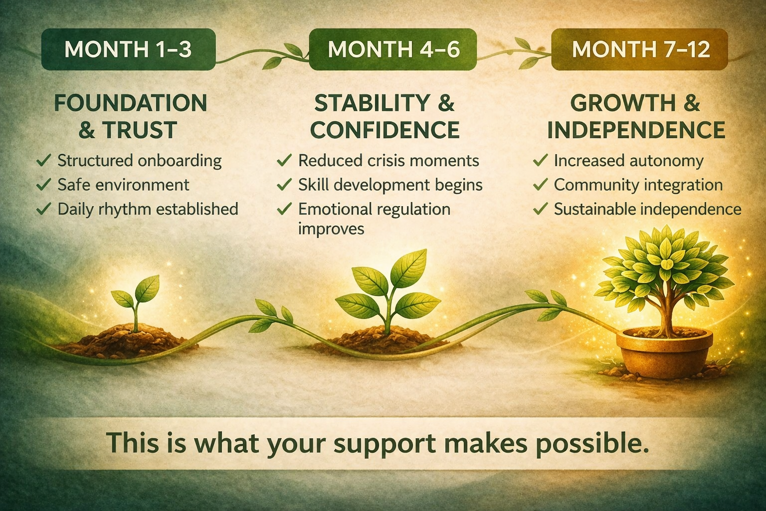 It creates a structured environment where individuals can build the foundation for long-term independence — with guidance, consistency, and care.