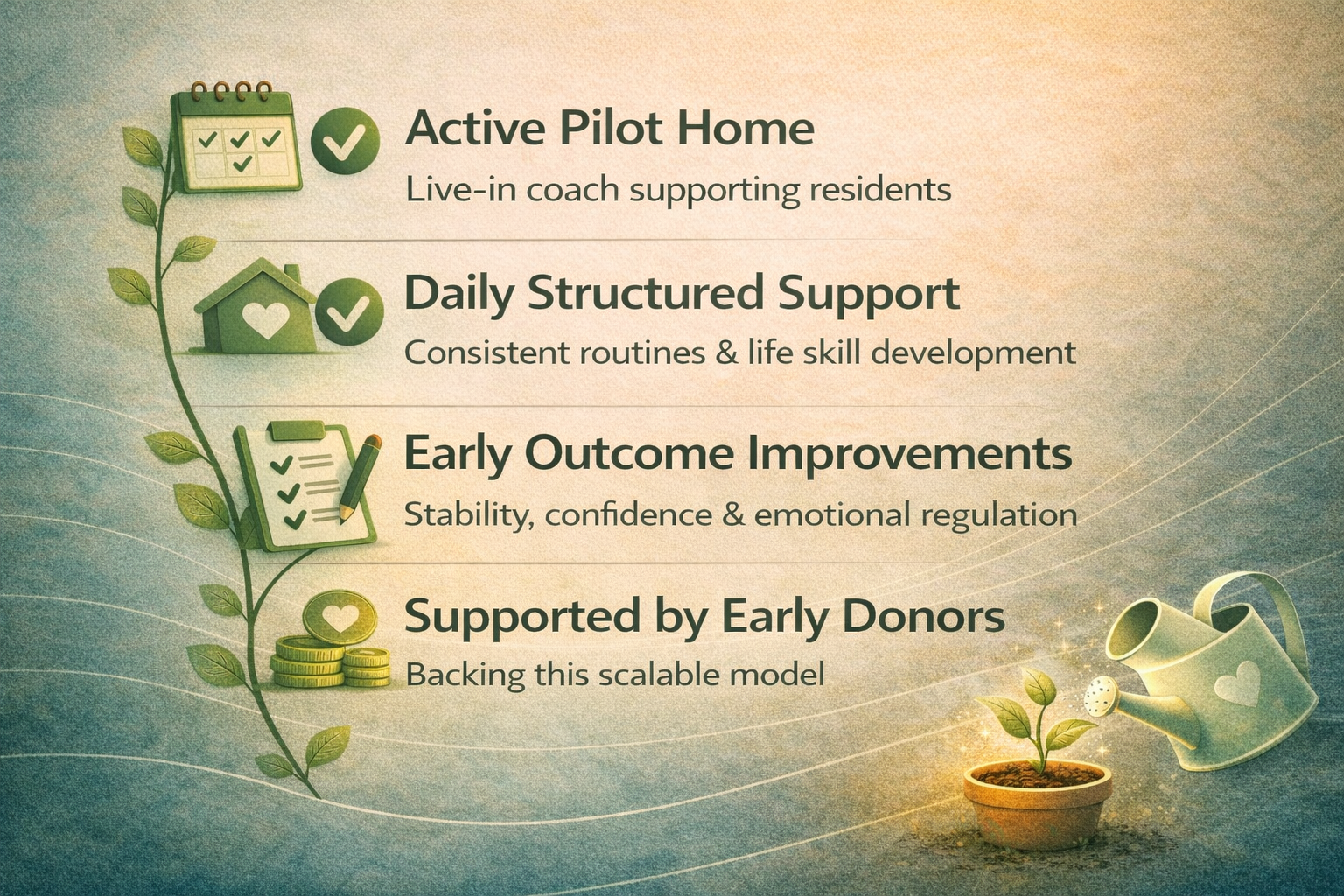 We are currently operating a 12-month proof-of-concept pilot designed to test a new model of transitional housing for neurodiverse adults.